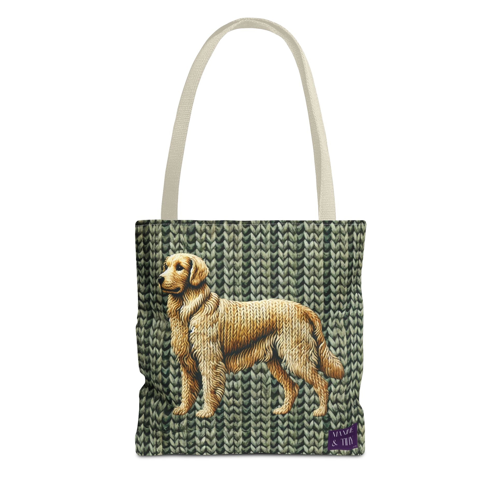 Crafted with love and cherished memories, The Sunny Tote honors our beloved Golden Retriever, Sunny, who remains forever in our hearts. This forest-green tote features a beautifully embroidered design inspired by Sunny himself, blending sentimental elegance with everyday practicality. Designed from durable spun polyester with reinforced double-stitched seams and cotton webbing handles in your choice of five stylish colors, it offers three versatile sizes to perfectly suit your lifestyle. The laminated interior ensures lasting quality and easy care.
